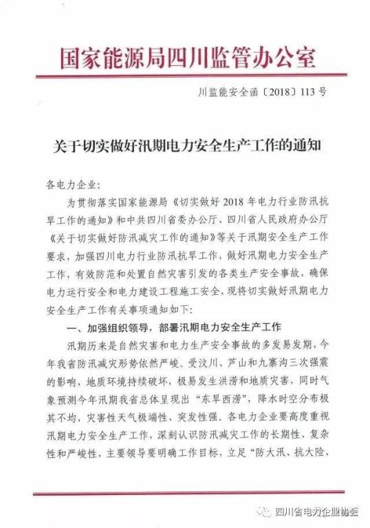 【安全生產】《關于切實做好汛期電力安全生產工作的通知》